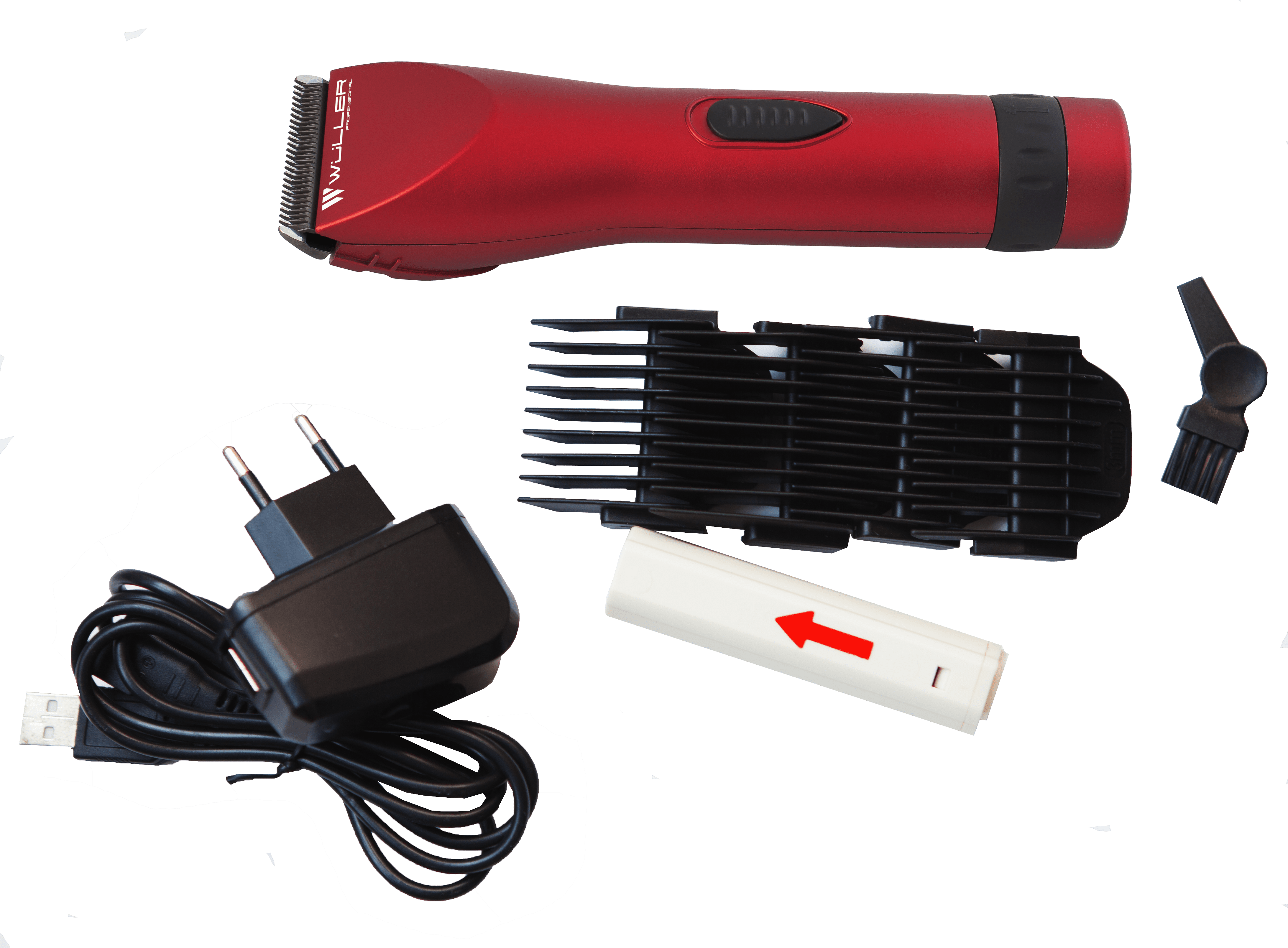 Машинка Wuller Harvey, аккум./сеть, красный, керам. нож 45 мм (0,8-2 мм)+насадки (3;5;7;9 мм), 12W (WM.521RD)